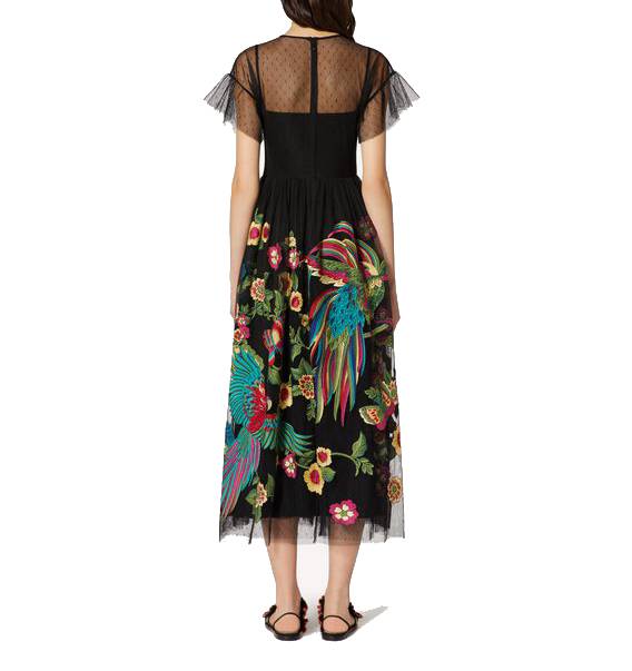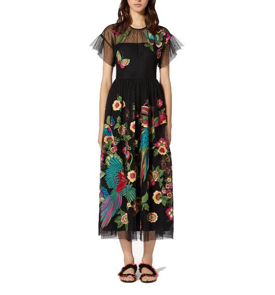 RED sau Romantic Eccentric Dress este linia sora a iconicei case de moda Valentino, ce reinterpreteaza intr-un mod romantic si jucaus piese clasice. Fondata in 2003, colectia combina stilul streetwear cu cel couture, fiind dedicat fashionistelor moderne. Rochia Birds of Paradise este o piesa unica, delicata si romantica ce te va cuceri prin broderia colorata.